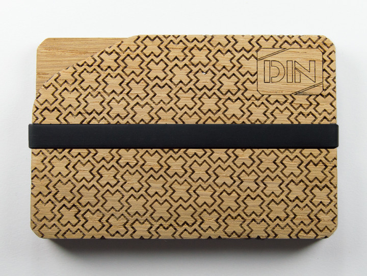DIN Wallets combine élégance du bois avec un design minimaliste et créé un portefeuille unique ! Fabriqué à partir de deux pièces individuelles en chêne qui sont maintenues ensemble par une bande de caoutchouc noir. Le porte-cartes DIN Wood Cross dispose d’un motif géométrique gravé au laser permettant de se démarquer un peu plus de la concurrence.