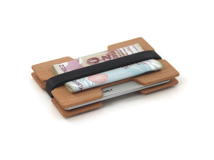 En provenance de Lettonie, 2cousinslv nous propose une alternative assez sympa du porte-cartes en bois. Les bandes de caoutchouc compriment les cartes ensemble mais ces bandes n’entourent pas le porte-cartes, elles sont incrustées dans les bords intérieurs. Il a été traité avec de la cire naturelle pour former une barrière protectrice contre la saleté et l’usure. 2cousinslv, c’est l’histoire de Edgars Akmentiņš et Toms Mazjānis, les deux cofondateurs. Ce porte-cartes peut contenir jusqu’à 10 cartes de crédit ou jusqu’à 20 cartes de visite.