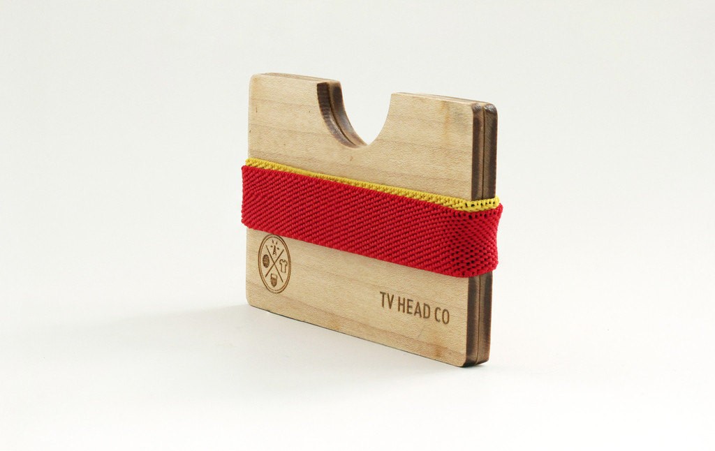 Basée à Miami, TV Head Co. offre en porte-cartes en bois minimaliste qui est réalisé à partir de deux morceaux de bois de recyclés, qui sont maintenues ensemble par Preppy, des bandes élastiques colorés. Ce modèle est livré avec deux bandes élastiques colorés, ce qui vous permettra de les changer à chaque fois que vous avez une envie particulière… Un pour un peu de changement dans votre vie.