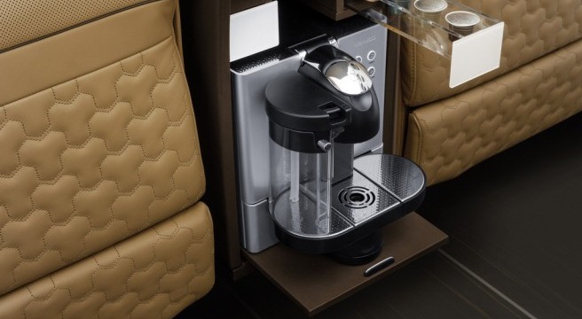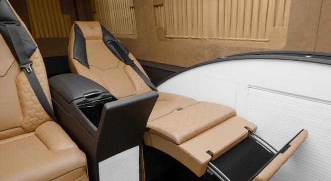 La cabine offre également tous les équipements dont un homme d’affaire a besoin pour exercer sa fonction, comme un réfrigérateur pour avoir à portée de main des bouteilles de champagnes ou autres boissons non alcoolisées. Le Brabus Sprinter – Business Lounge Edition reçoit également comme équipement standard une machine Nespresso qui se loge dans un tiroir dissimulé sous l’accoudoir central.