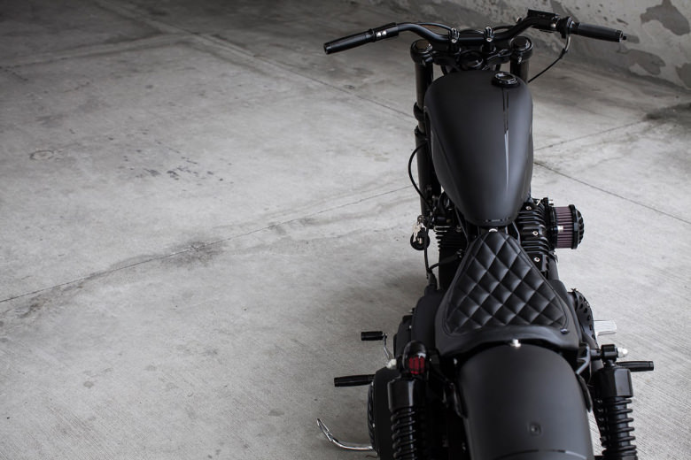 Cette fois-ci, le garage Taïwanais s’est attaqué à un autre classique du constructeur américain, le Fat Bob. Véritable hommage au noir, ce Bobber bizarrement appelé Dyna Guerilla, est une pièce unique, car comme à l’habitude de l’atelier asiatique, une grande partie des pièces (leviers de pieds, filtre à air, réservoir, capuchon et selle) ont été usinés spécialement pour cette commande.