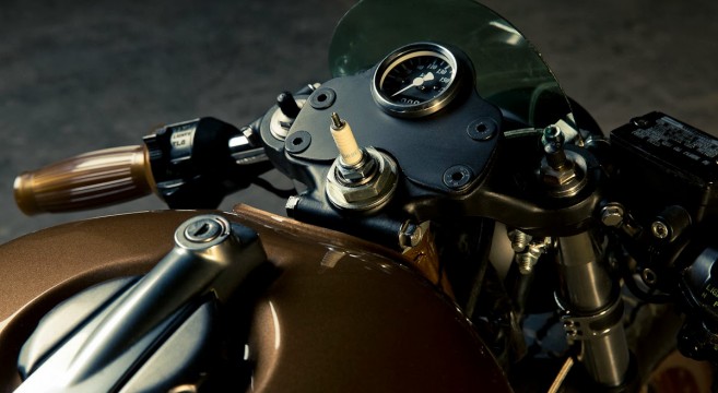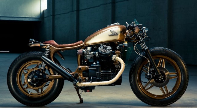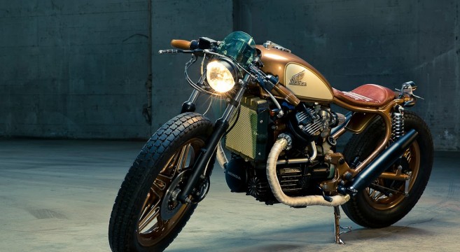 Pour une moto qui était connu comme le mouche en plastique (traduction littéraire de : plastic maggot) cette Honda CX500 Cafe Racer customisée a certainement été transformée en un papillon majestueux. Dirk Oehlerking de Kingston Customs est l’homme derrière cette étonnante métamorphose, prenant une moto de poids moyen de la fin des années 70 et la transforme en un petit trésor d’or en 2014.