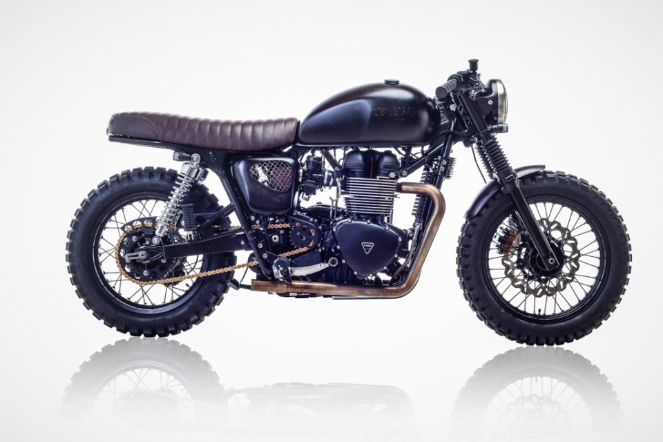 La nouvelle bécane de David Beckham n’est autre que cette magnifique Triumph Bonneville ! Le mix absolument parfait entre en Café Racer et un Scrambler. Ce sont les gars de British Customs qui ont eu le privilège de pouvoir concevoir le custom de David Beckham. On adore le look “industriel” de cette bécane qui nous fait penser, on ne sait pas pourquoi, à James Dean. On le voit enjamber ce genre de custom avec un jean brut et un tshirt blanc. Bref, le boulot de British Customs est tout simplement incroyable sur cette Triumph Bonneville…
